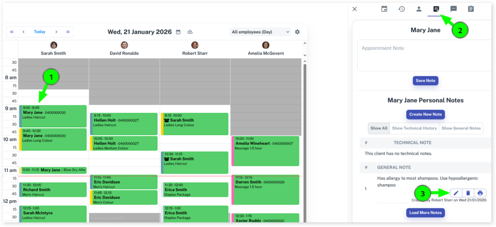 The details of a note may change over time, from needing a specific shampoo or recording a client has gone from long hair to short hair.