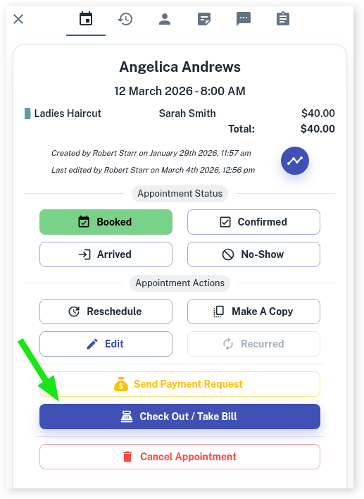 - Press the Check Out / Take Bill button