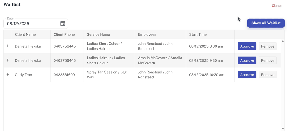 You can also click on Show All Waitlist to view all appointments currently on the Wait List.
