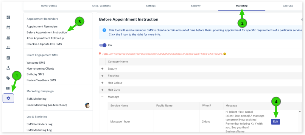 You may have stopped providing a Service or find that you no longer need to send a pre-appointment message to clients for a specific Service anymore. This document shows you how to do that.