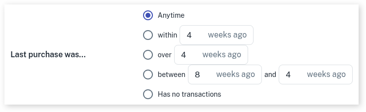 Clients whose last purchase was between two dates