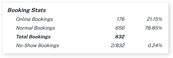 No-shows happen, but now you can quickly see how many occurred, all in one place, alongside your other key business metrics.