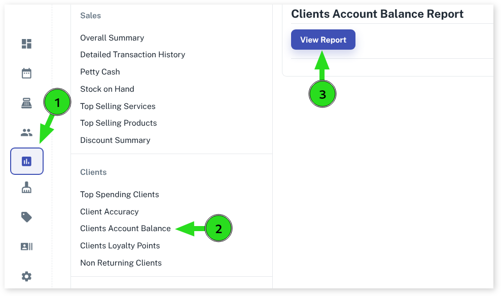 This report is a handy way to see at a glance the current account balances of all clients. This can be helpful to see which clients have a credit but haven’t used it or to see if clients are in a negative amount and need to be followed up.
