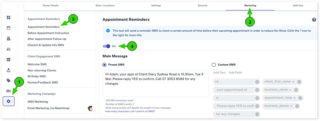 How to Turn On Email and SMS Reminders