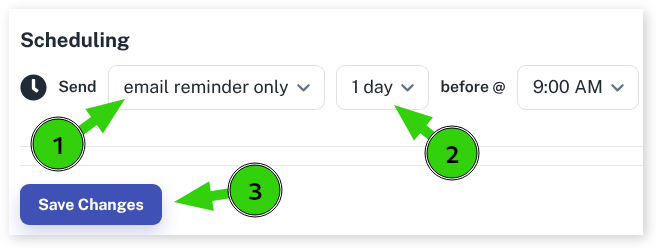 - Choose from the drop-down menu both SMS and email reminders