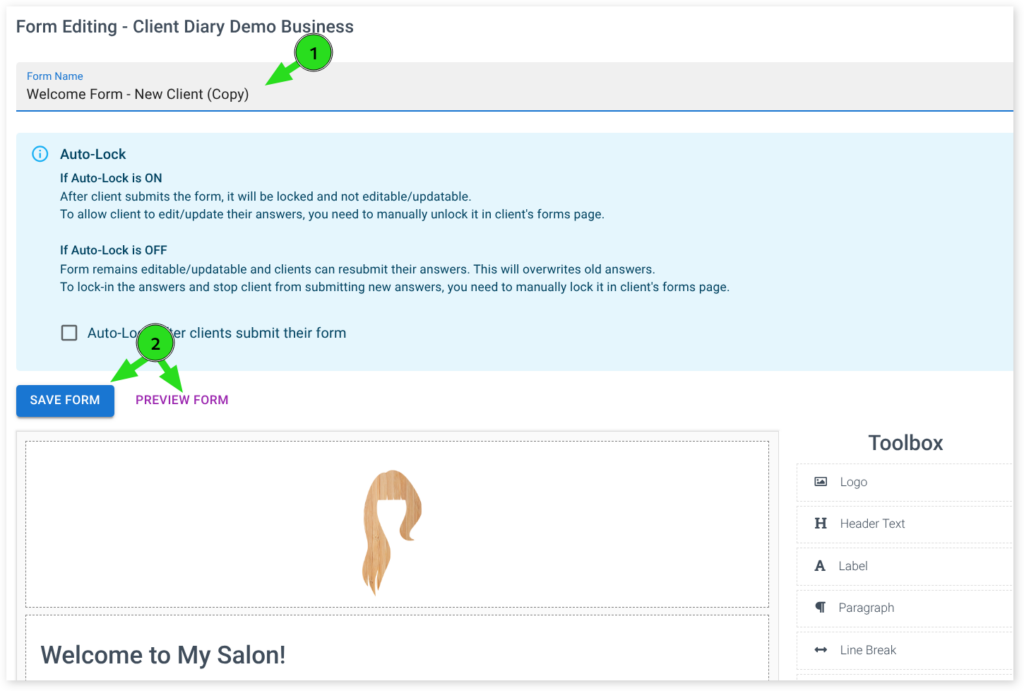 - Click on Save Form once you have happy with your changes