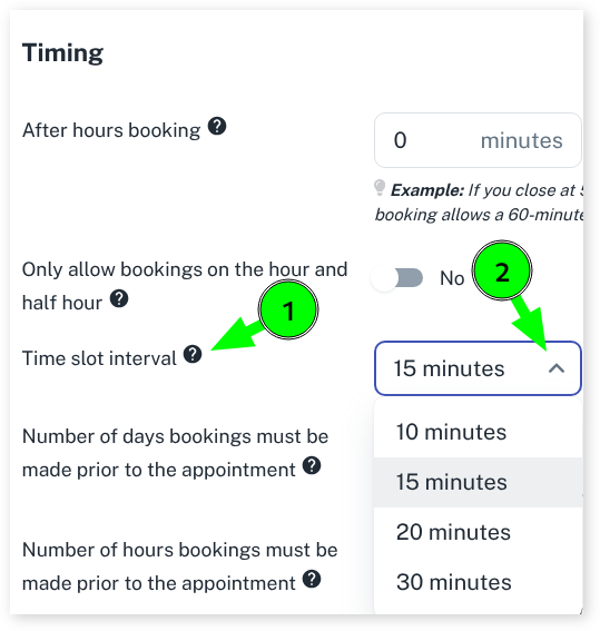 Appointments can take many different sizes for all different types of businesses, where short bookings are great to fill the small time slots in your day but when clients are booking online it may clutter your Calendar and make it harder to book larger appointments. You can now set up your online booking so your clients can only make online bookings in ten to thirty minute sets.