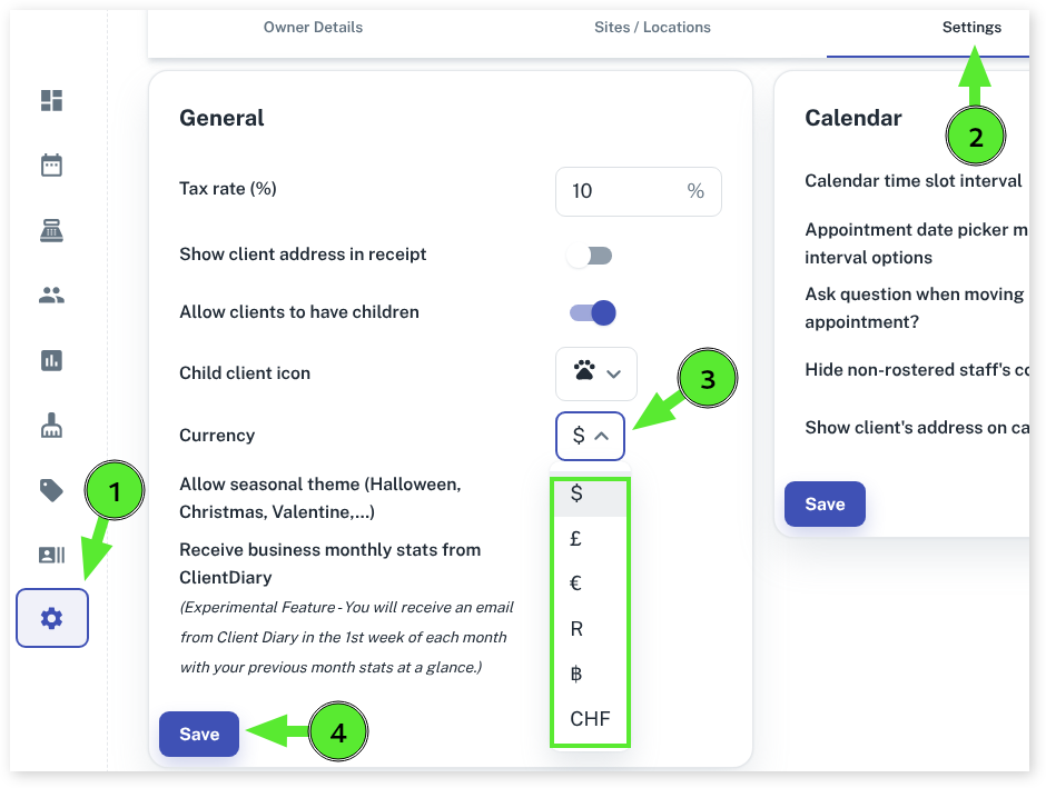In Client Diary you can change your currency value so it shows in your transactions, for example from $ to £.