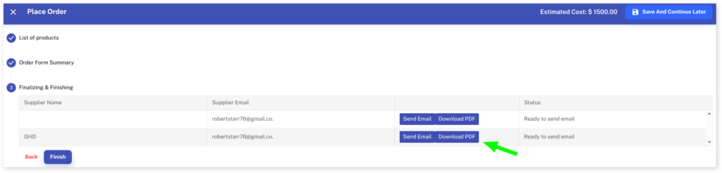 Simply select the Download PDF button. This will produce a PDF that you can read to your supplier over the phone.