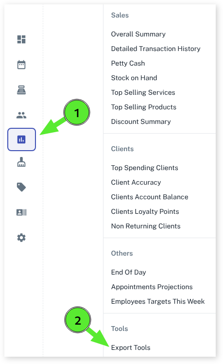 Client Diary can easily export your transaction data into a spreadsheet file. This allows you to analyse the sales data any way you wish giving you complete freedom over how you view your data and allows your book keeper / accountant to analyse your sales data in any way they see fit.