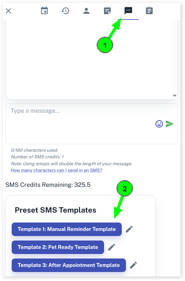Client Diary has the ability to quickly send a preset message to a client so you don’t have to type out the same kind of message each time.