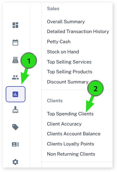 This report is used for a specific purpose of seeing which of your clients is spending the most within a time frame. This information could then be used to reward your clients for their loyalty or to help promote to clients who have spent the least.