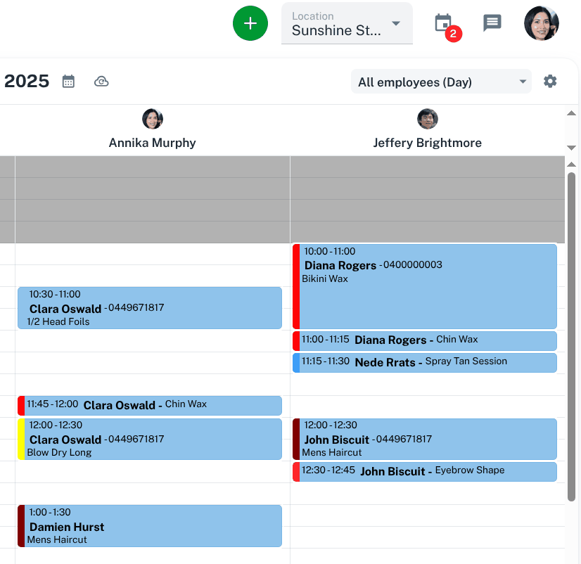 REMEMBER: If you leave the switch on, it will always show cancelled appointments. Be sure to switch it off when done.