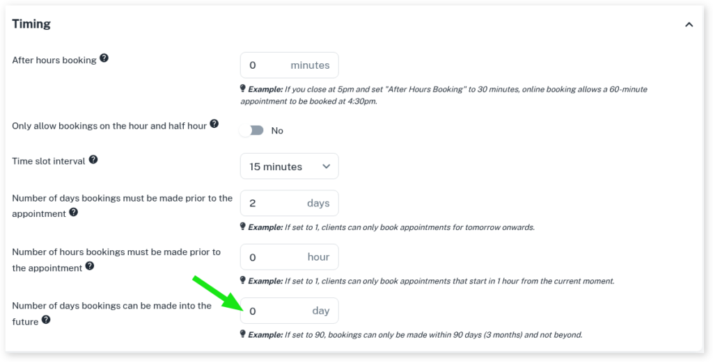 - Go to Number of days bookings can be made into the future