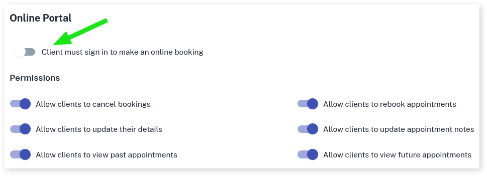 You may like to set your online portal up so that clients must sign in to make an online booking.