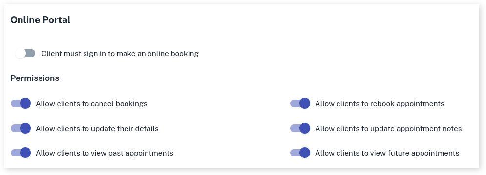 You can then choose which options you want your clients to be able to perform by sliding the toggle on or off accordingly.