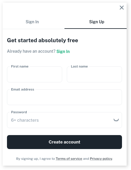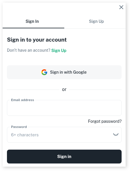 Clicking on Sign in they will be presented with the following screen with the option to either create an account or sign in with their details. Signing up is absolutely free.