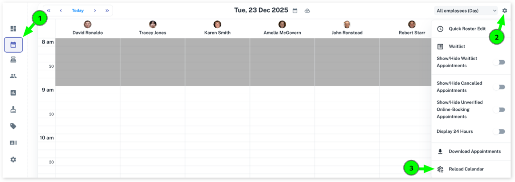 For businesses in this situation, we’ve added a simple button to the Calendar to refresh the system.