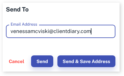 - Press Send. Pressing Send & Save Address will send the email to the address and save that address as the client’s new email address