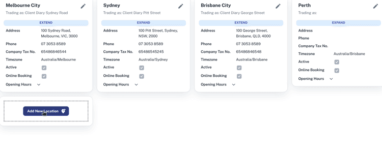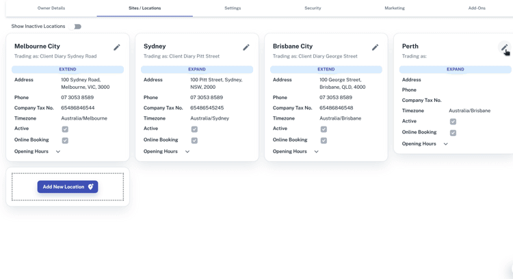 As your business grows, it’s natural to expand and add new locations or branch out into different mediums. Client Diary is built from the ground up to support multi locations / multi sites. To create a new site: