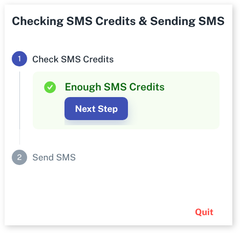 You will now see a pop up Checking SMS Credits & Sending SMS – Step 1