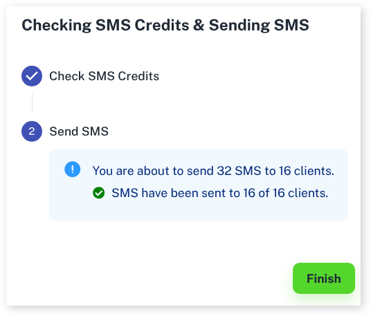 The system will check if you have enough SMS credits to send at this point. If there’s enough the messages will send. If you need more credits to reach your audience, it will let you know and give you the opportunity to top up your credits at this point.