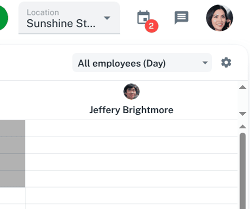The day view for all employees shows the calendar for all employees for each individual day as showed in the pic below.
