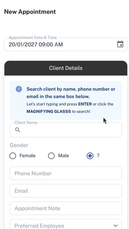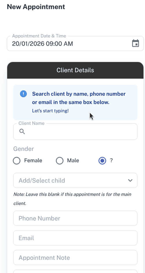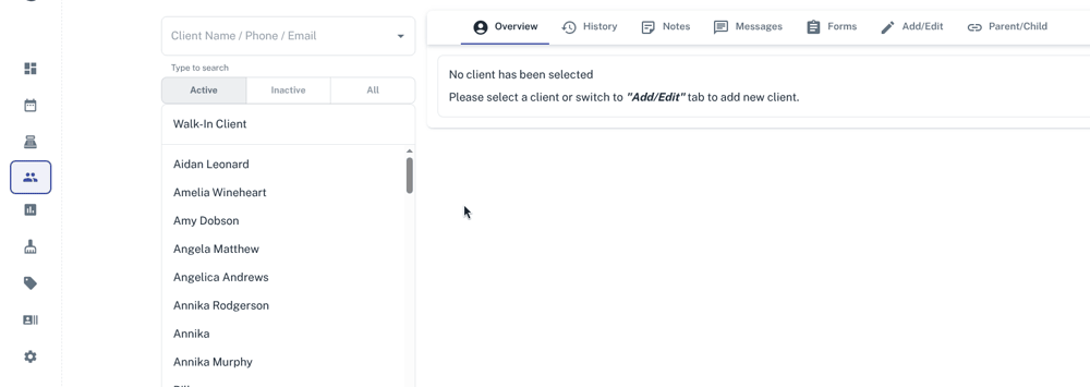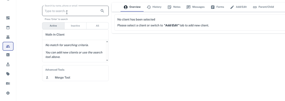 - When entering the name it will automatically list client’s names